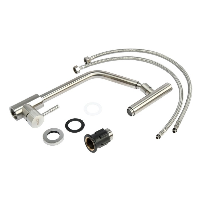 Смеситель для кухни ZEIN ZS-1, "микрофон", картридж 35 мм, нержавеющая сталь, сатин