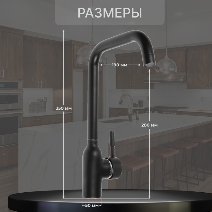 Смеситель для кухни ZEIN ZF-012, с высоким изливом, картридж керамика 40 мм, латунь, черный