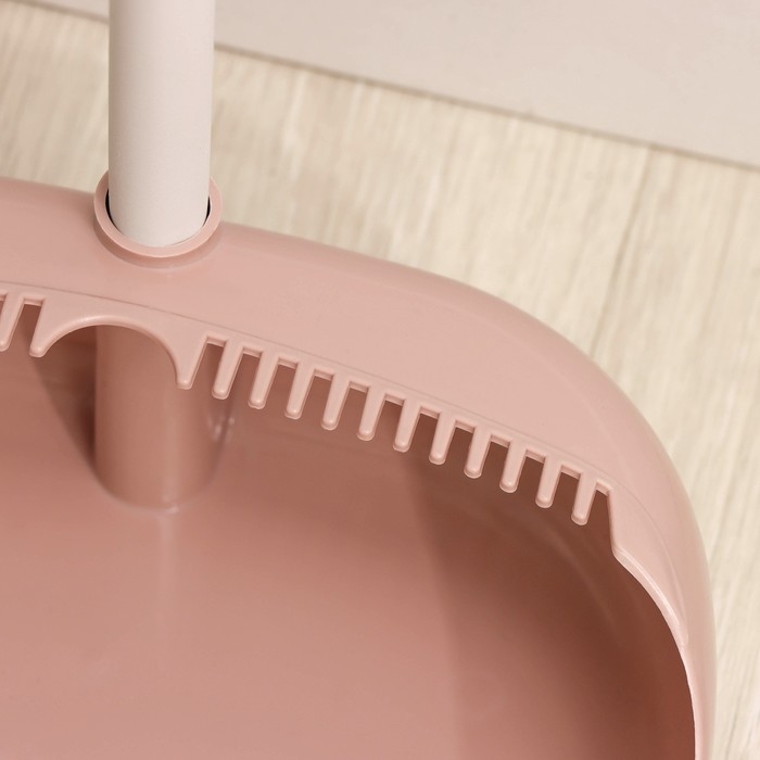 Веник с совком «Ленивка», 19,5×25×90 см, цвет бежевый