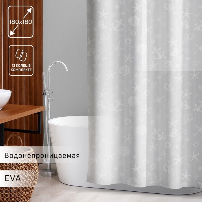 Штора для ванны Доляна «Море», 180×180 см, EVA, цвет прозрачный