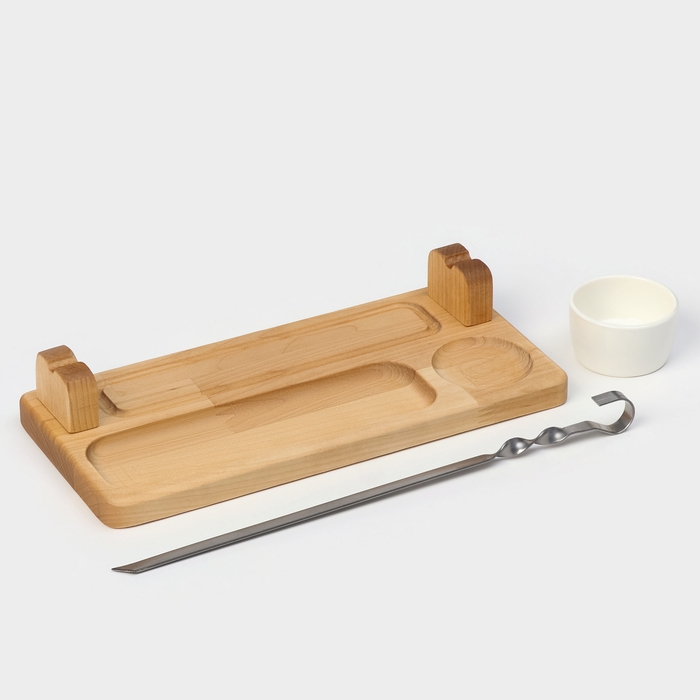 Доска для подачи, шампур металлический, соусник, 30×14 см, берёза, пропитано минеральным маслом