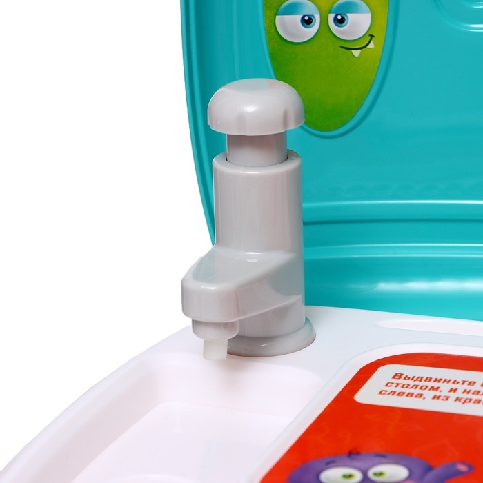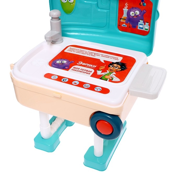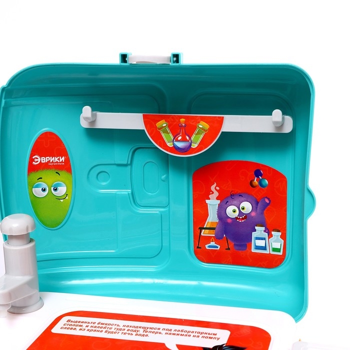 - После экспериментов можно вымыть руки: лаборатория имеет отсек для воды и рабочий кран (работает как насос).