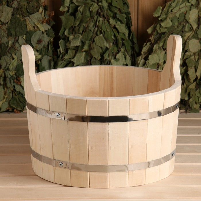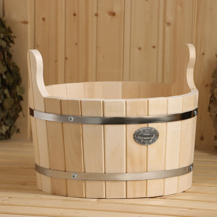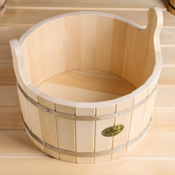 Шайка из липы, 15 л, круглая, нержавеющий обруч, "Добропаровъ"