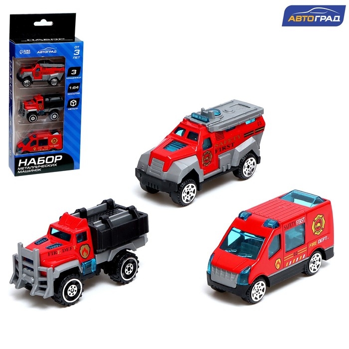 Набор металлических машин «Пожарная служба», 3 штуки