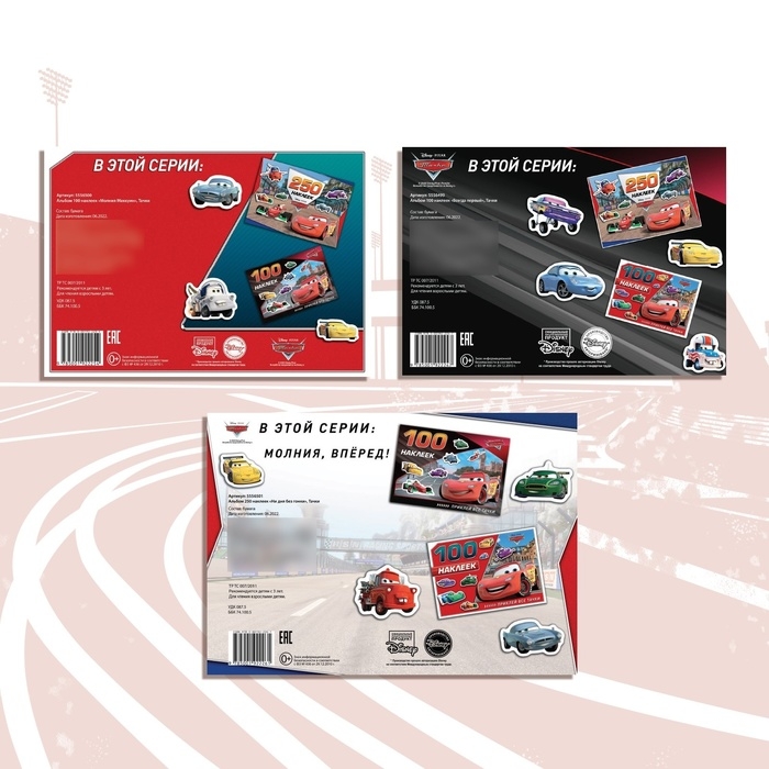 Набор альбомов 100 и 250 наклеек «Друзья», 3 шт., Тачки