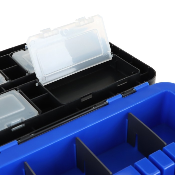 Рыболовный ящик выгодно отличается среди аналогичных ярким и современным дизайном. Благодаря объему 19 литров, ящик вместит очень много полезных снастей для рыбалки. Дополнительная проставка с 2 отсеками и съемными перегородками позволяет разместить небольшие удочки и другие снасти.