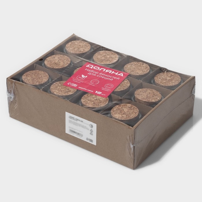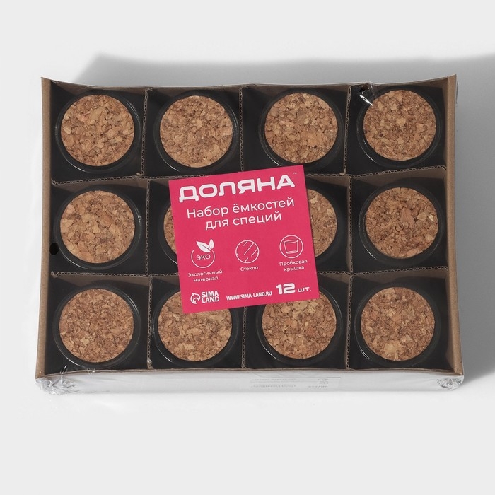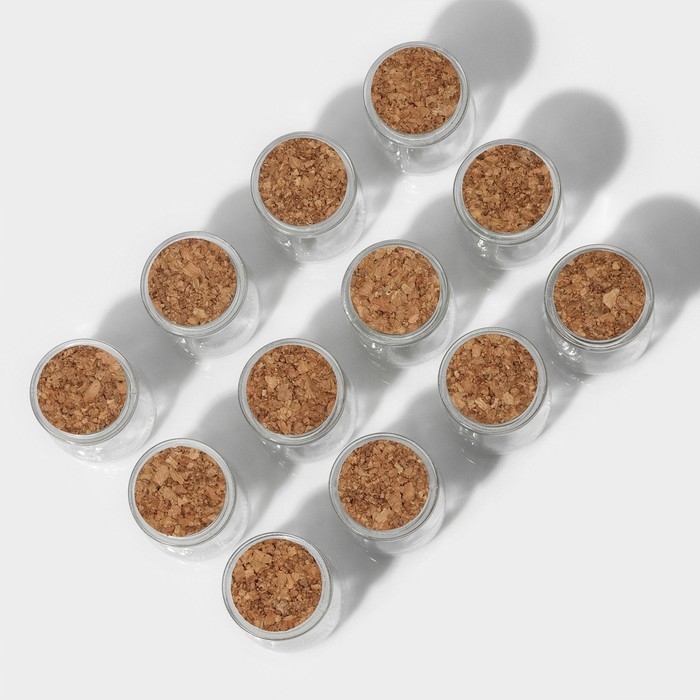 Набор стеклянных баночек для сыпучих продуктов с пробковой крышкой Доляна «Парфе», 100 мл, 5,7×7 см, 12 шт