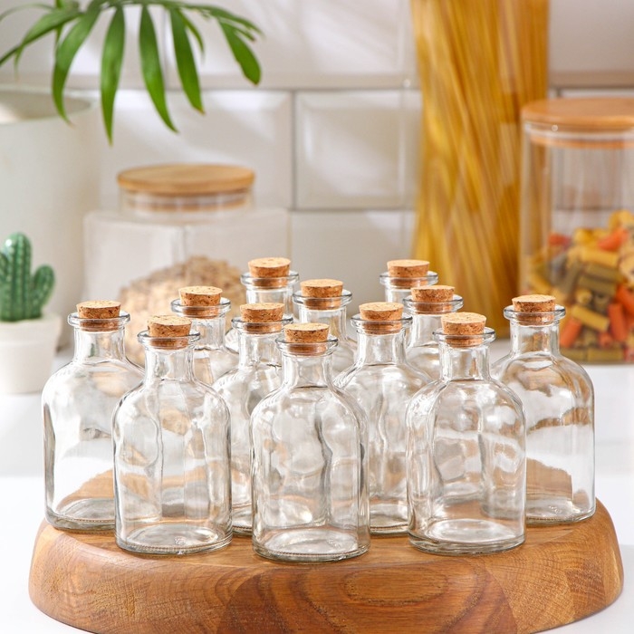 Набор стеклянных баночек для сыпучих продуктов с пробковой крышкой Доляна «Парфе», 125 мл, 5,8×10,4 см, 12 шт