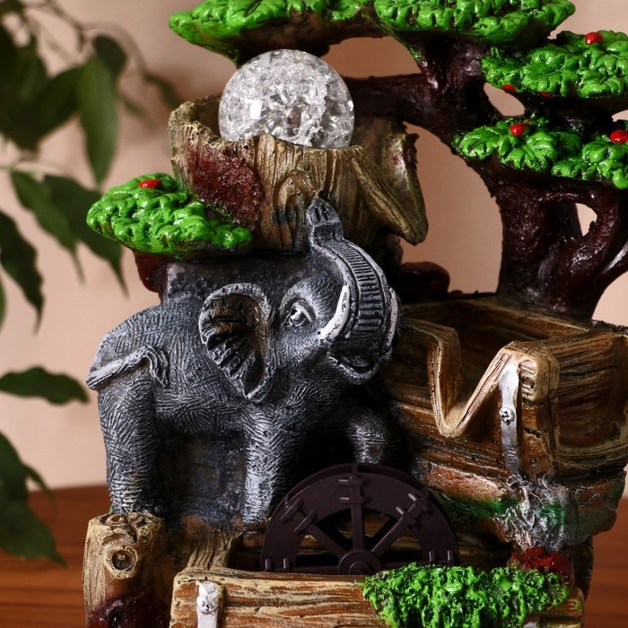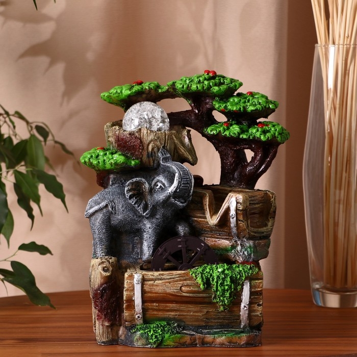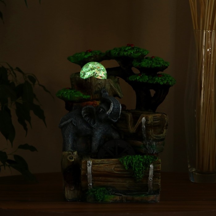 Фонтан "Слоник у воды, на бочках" 12х16х26 см (с подсветкой)