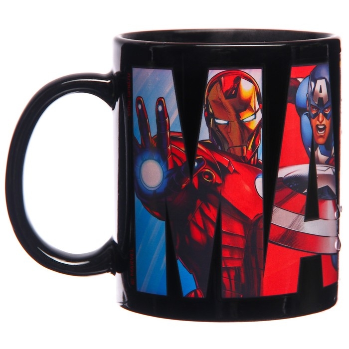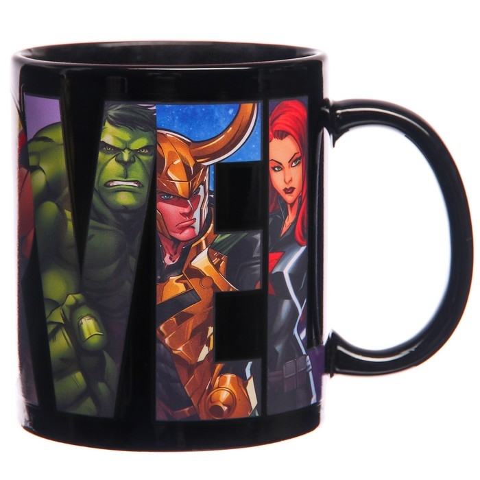 Кружка-хамелеон, черная, 330 мл "Супер-герои", Мстители