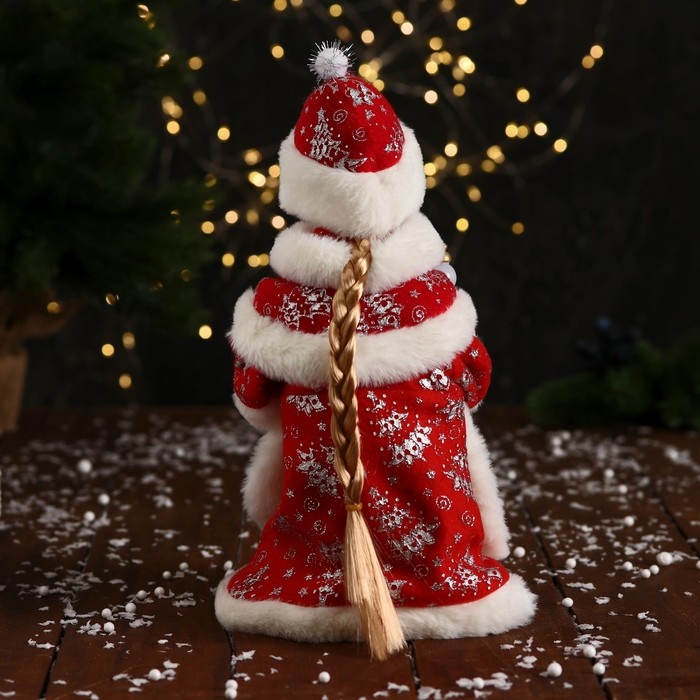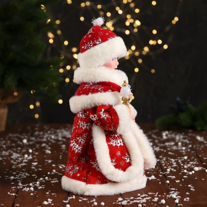 Снегурочка "Пушистой шубке с бантом и фонариком" двигается, 30х14 см, красный
