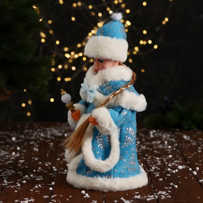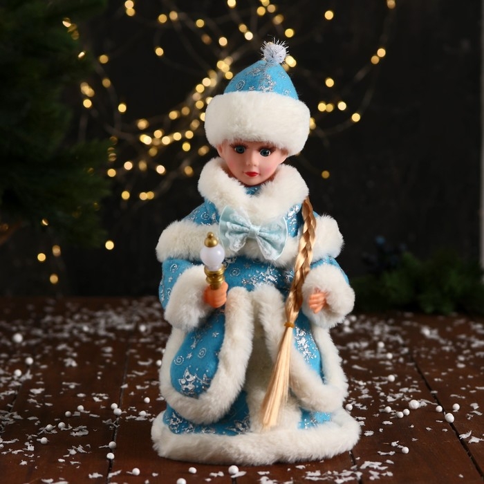 Снегурочка "Пушистой шубке с бантом и фонариком" двигается, 30х14 см, голубой