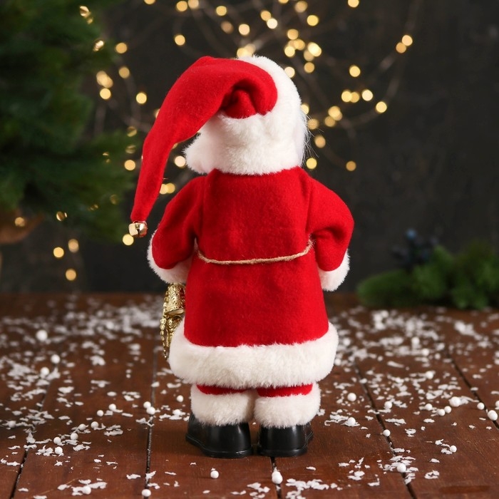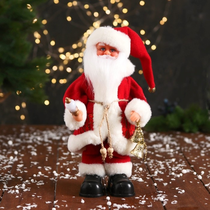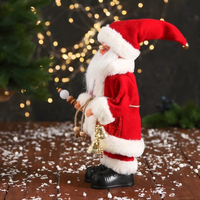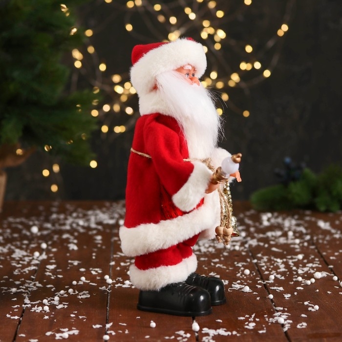 Дед Мороз "С колокольчиками и с фонариком на посохе" 30 см, двигается, красно-белый