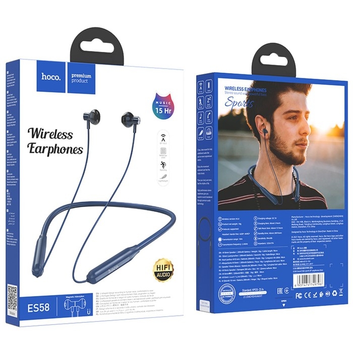 Наушники Hoco ES58, беспроводные, вкладыши, BT5.0, 200 мАч, микрофон, синие