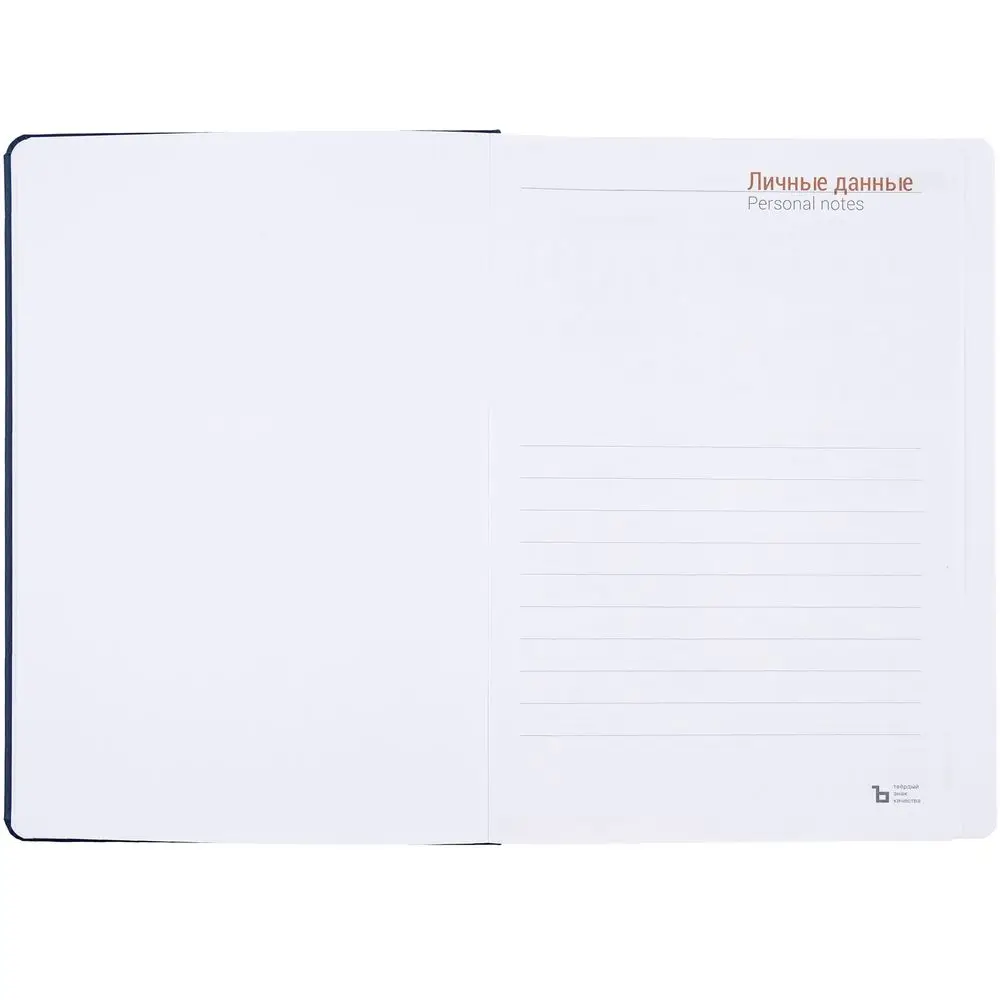 Ежедневник с твердой обложкой, выполнен из материала Latte, темно-синий XX, дополнен ляссе в цвет обложки.