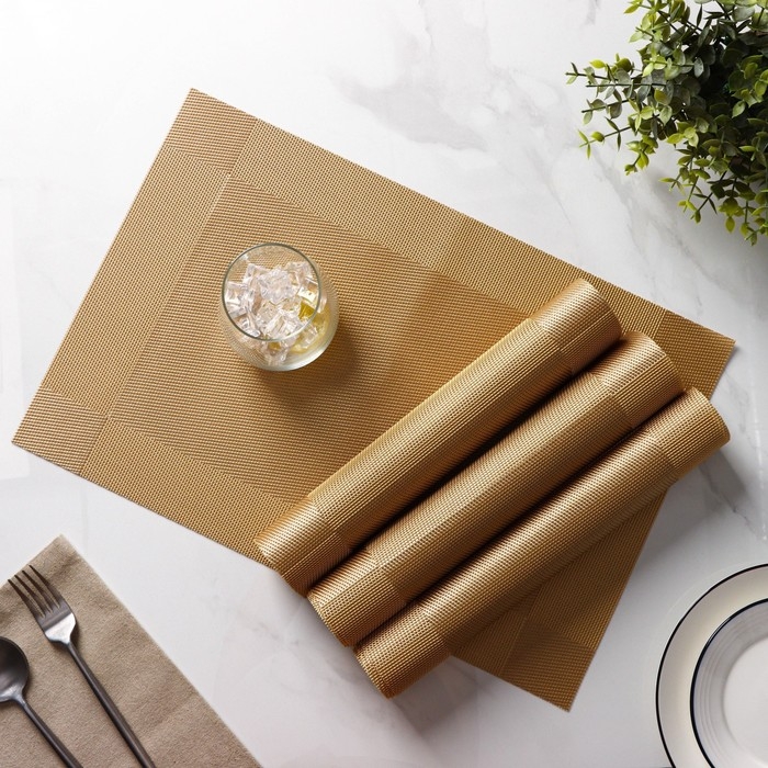 Салфетки сервировочные на стол Доляна «Шахматы», 45×30 см, 4 шт, цвет карамельный