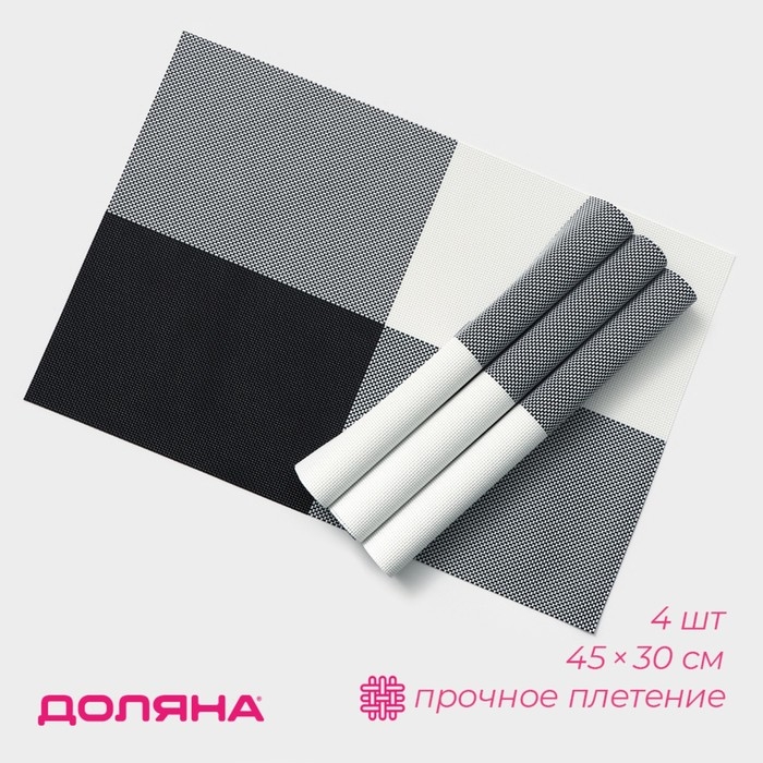 Салфетки сервировочные на стол Доляна «Настроение», 4 шт, 45×30 см, цвет бело-чёрный