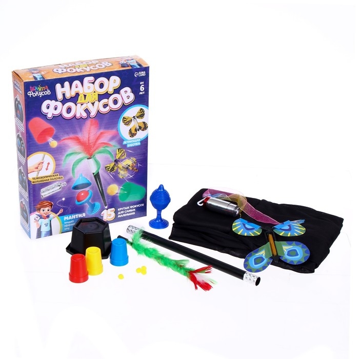Этот набор станет занимательным и увлекательным подарком! В нём уже есть всё, чтобы почувствовать себя настоящим фокусником. Магом станет не только ребёнок, но и родители! Впереди вас ждут самые захватывающие шоу. Повторяйте фокусы из инструкций и придумывайте свои собственные.