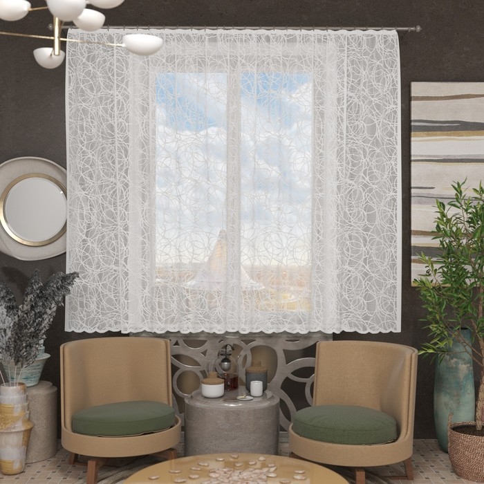 Тюль на кухню без шторной ленты, размер 165х170см, цвет белый, 100% полиэстер