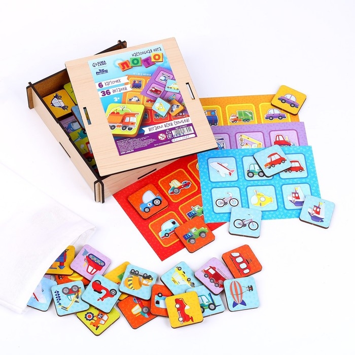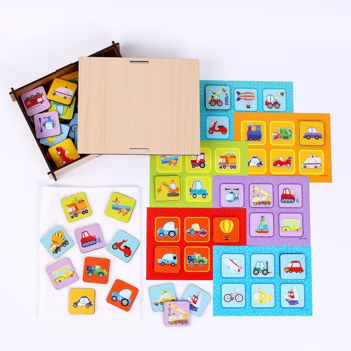 Лото — старинная игра, известная всему миру. Специально для малышей мы разработали свой вариант этого развлечения. Детское лото имеет яркие рисунки с различными машинами, которые помогут ребёнку изучить наземный, воздушный и водный транспорт.