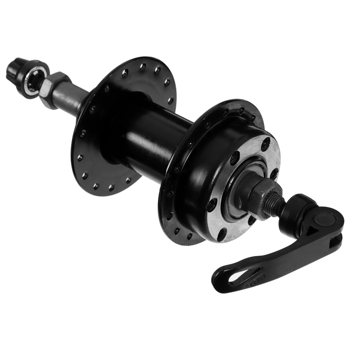 Втулка предназначена для многоскоростных велосипедов. Изделие выполнено из стали, имеет длину оси 135 мм и насыпные подшипники. Втулка совместима с дисковой тормозной системой и подойдёт для колёс с 32 спицами.