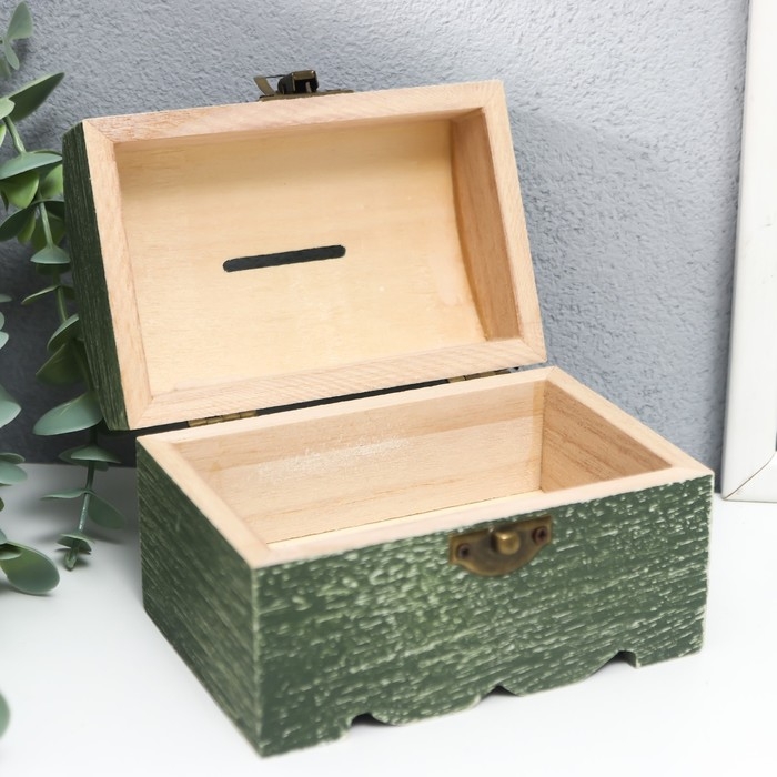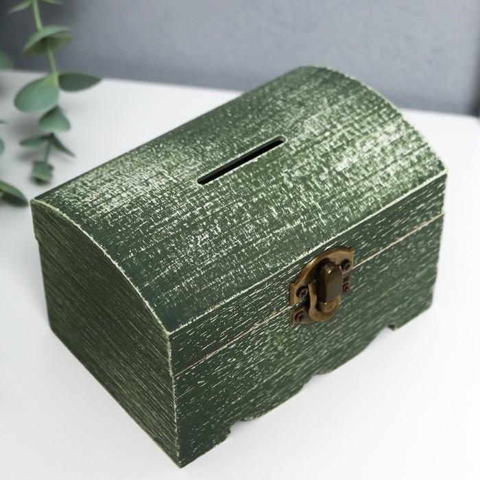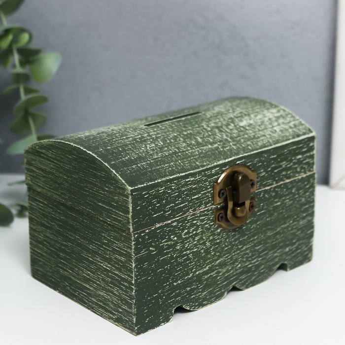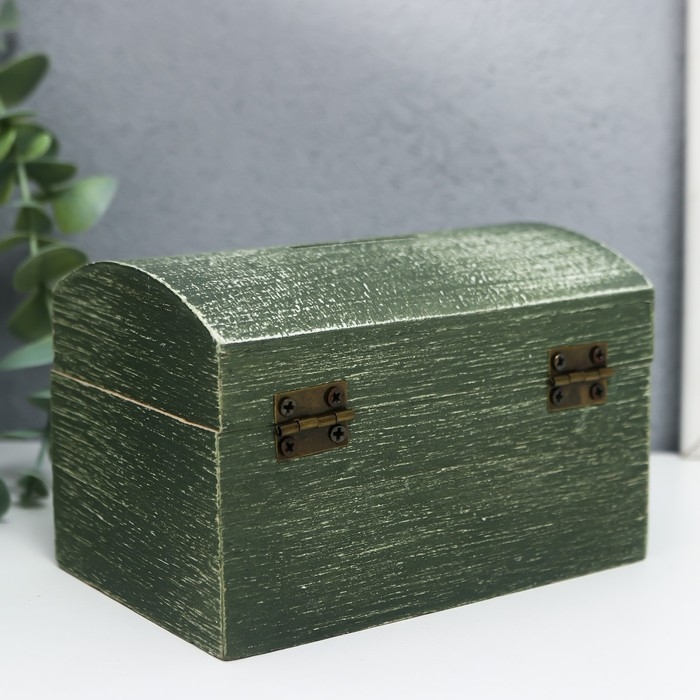 Шкатулка дерево "Сундучок" темно-зеленая 8х8х12 см