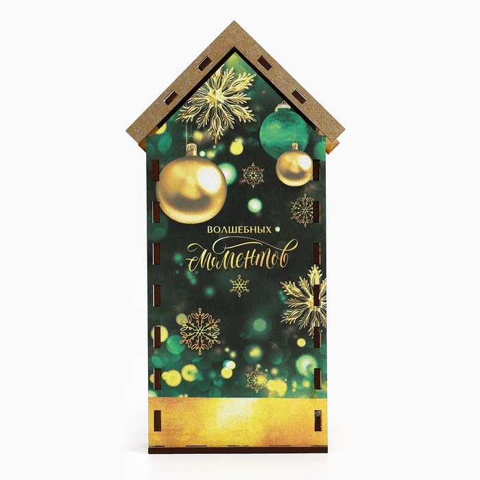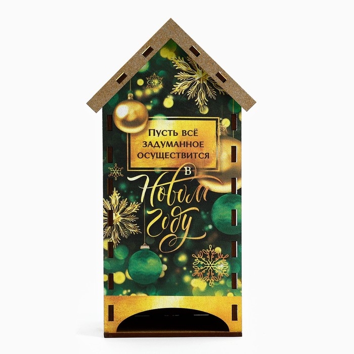 Подарочный новогодний набор, в который входит чайный домик и кружка, выполнен в эксклюзивном новогоднем дизайне. Такой новогодний подарок понравится любителям чая! Чайный домик – это необычная упаковка для хранения чая. Он поможет навести порядок на обеденном столе, а также станет его яркой деталью. Чайные пакетики закладываются сверху внутрь домика и вынимаются снизу. Органайзер для чая выполнен из материала ХДФ, а красочность рисунка задаётся благодаря оклейке полиграфией. Кружка также имеет красочный новогодний дизайн, рисунок нанесен с помощью сублимации. Керамическую кружку можно спокойно мыть в посудомоечной машине и грет в СВЧ-печи. Такой новогодний сувенир отлично подойдет для подарка родным и друзьям!