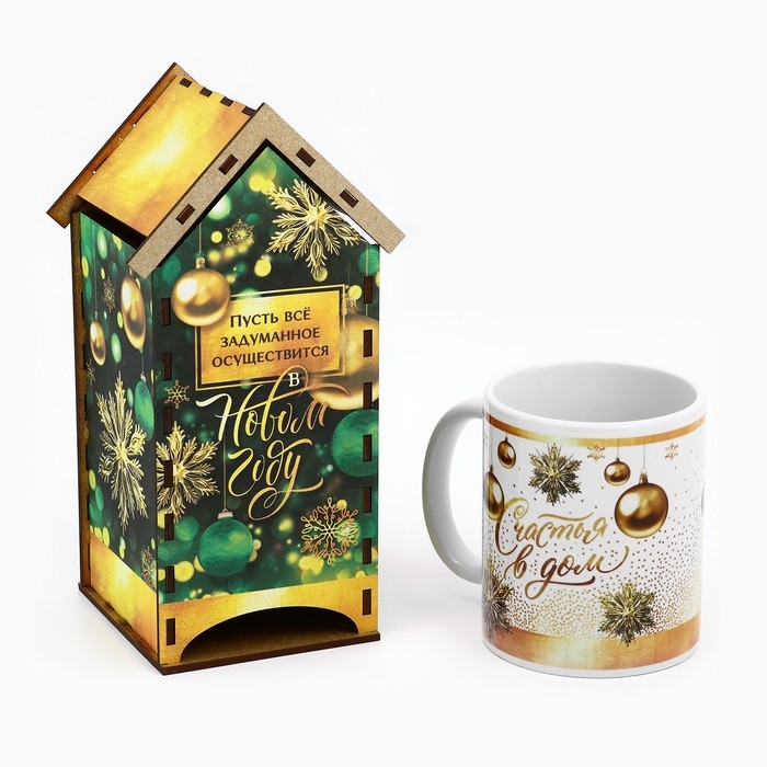 Подарочный новогодний набор: чайный домик и кружка «Новый год: Наслаждайся и думай о чуде»