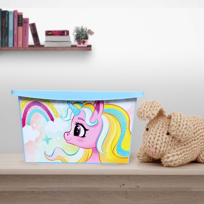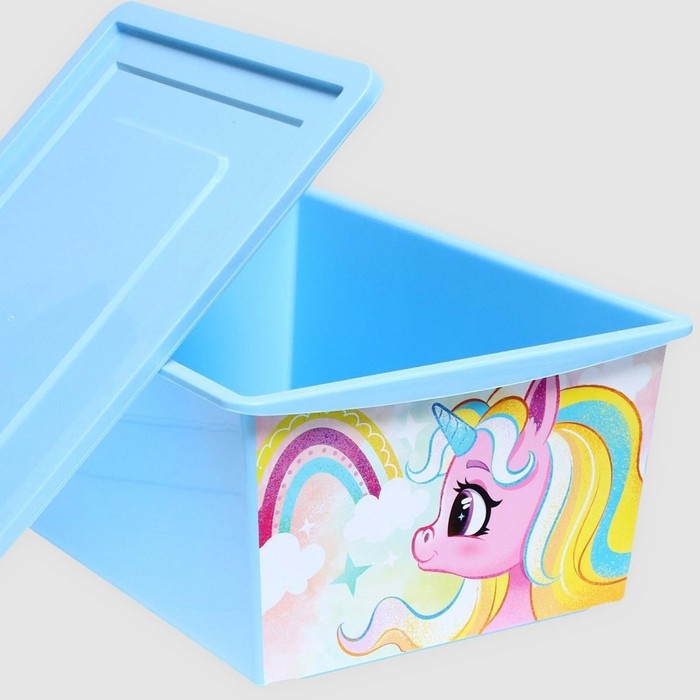 Ящик для игрушек с крышкой, «Радужные единорожки», объём 30 л, цвет светло-голубой
