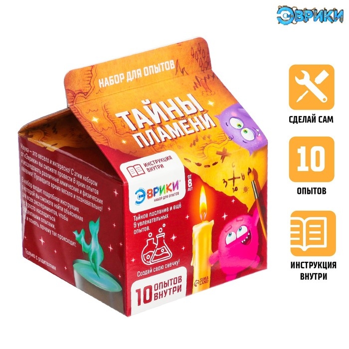 С набором для опытов «Тайны пламени» ребёнок узнает об удивительных свойствах веществ, проведёт 10 огненных экспериментов и удивит друзей.