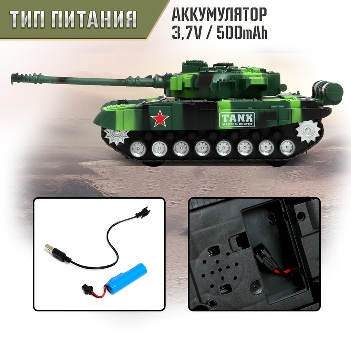 Танк радиоуправляемый «Победитель», работает от аккумулятора, цвет зелёный