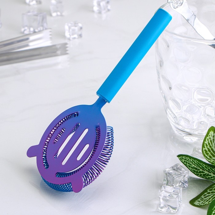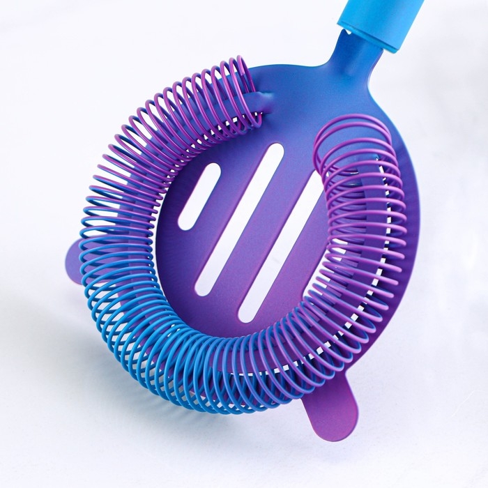Основное отличие стрейнера от обычного ситечка — скрученная в пружину проволока. Благодаря ей крупные кусочки фруктов остаются в стрейнере, а мякоть и мелкие частички льда попадают в коктейль.