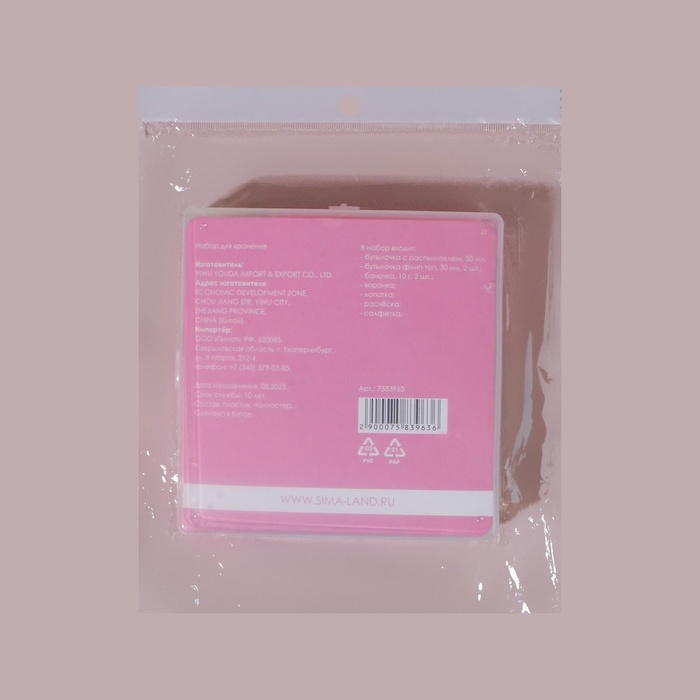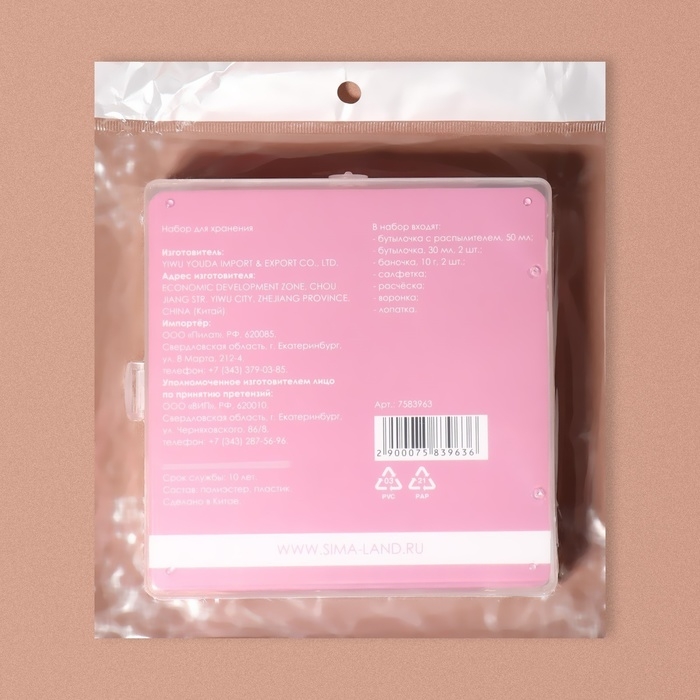 Набор для хранения, в чехле, 9 предметов, цвет прозрачный/розовый