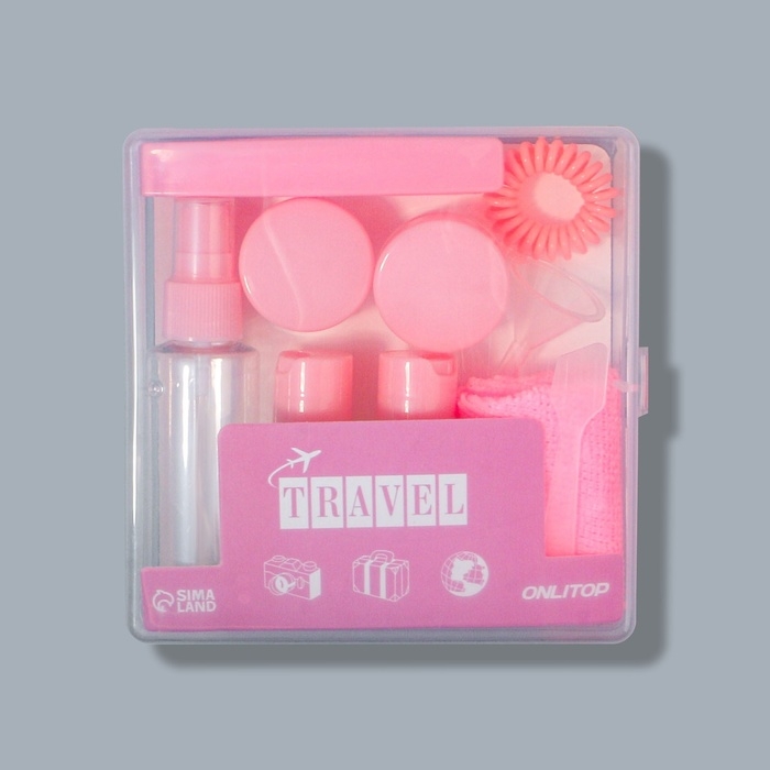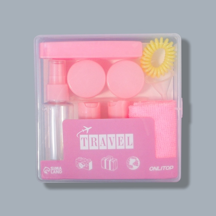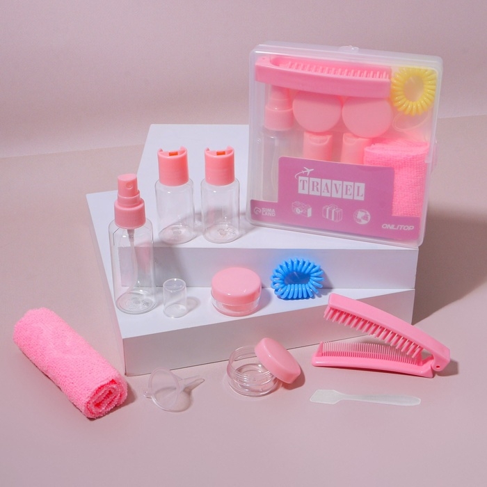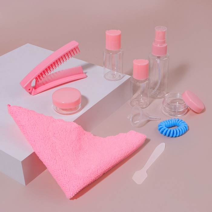 Набор для хранения, в футляре, 9 предметов, цвет прозрачный/розовый