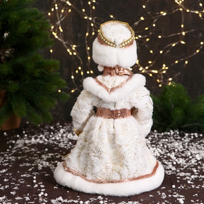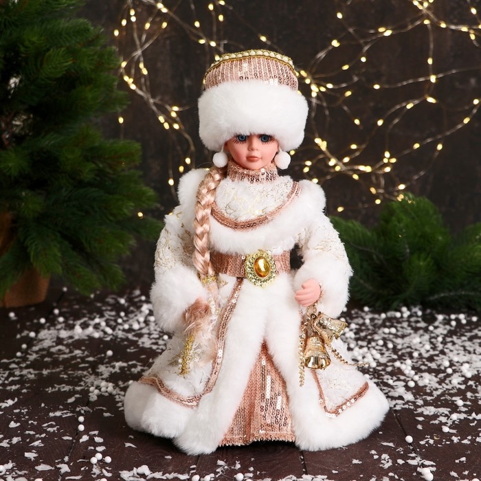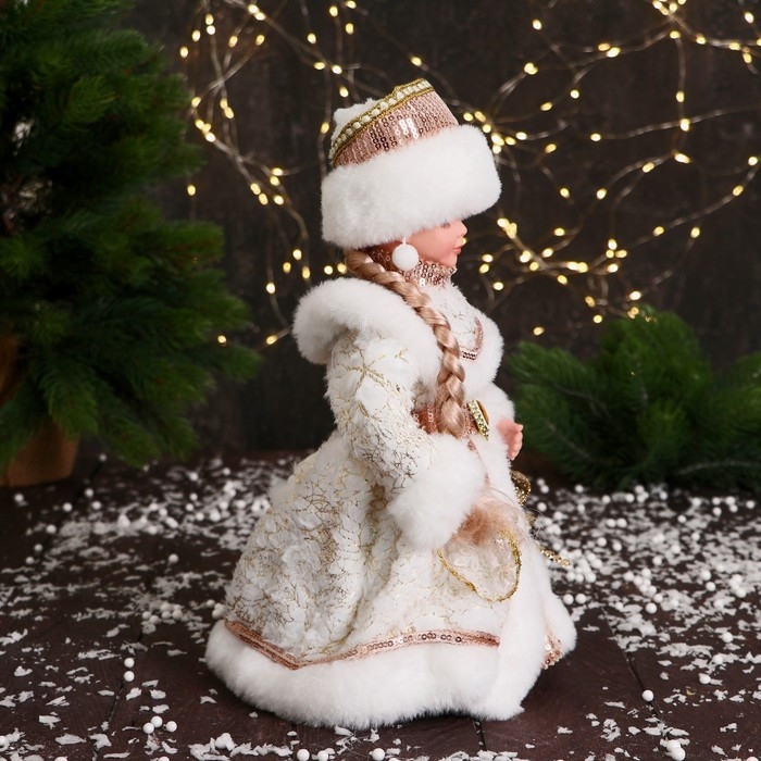 Снегурочка "В шубке с пайетками и косой" двигается, 30 см, бежево-белый