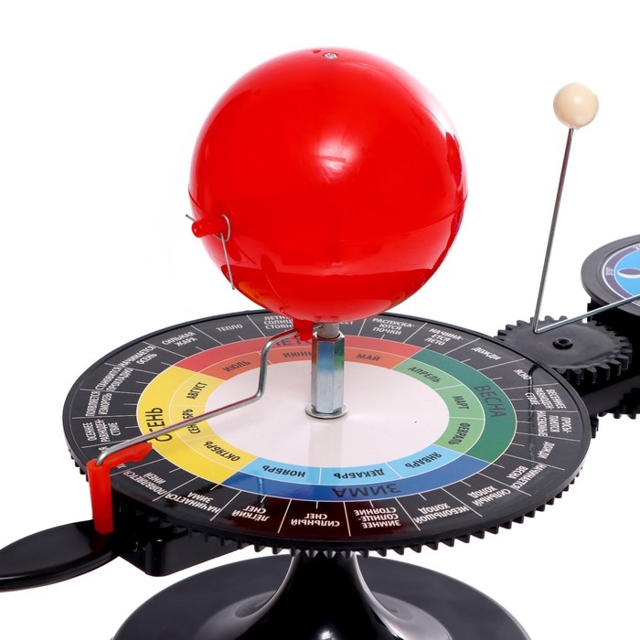 При вращении ручки на большом диске можно наглядно увидеть, как меняются времена года и от чего это зависит.