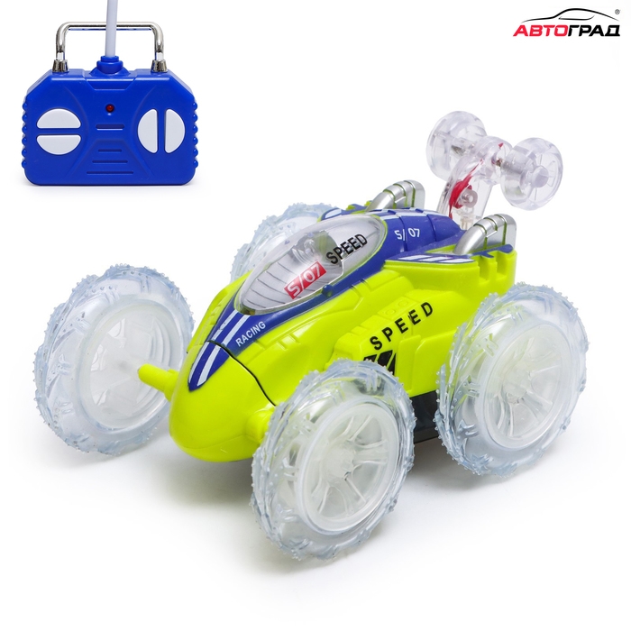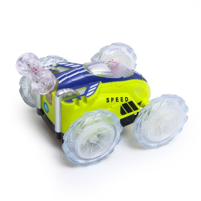Машина-перевёртыш радиоуправляемая «Трюк», работает от батареек, световые эффекты, цвет зелёный