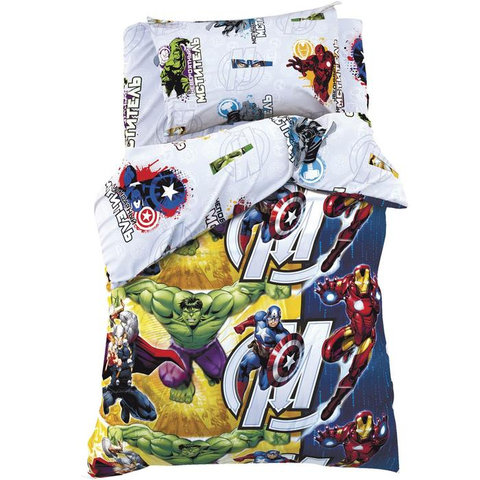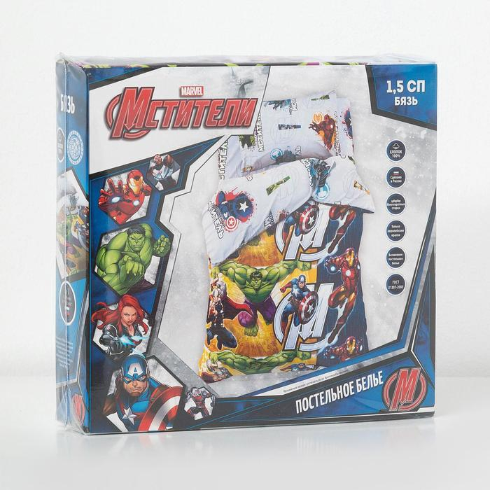 Постельное бельё 1,5 сп "Команда Мстители", размер 143х215 см, 150х214 см, 50х70 см-1 шт., 100% хлопок, бязь