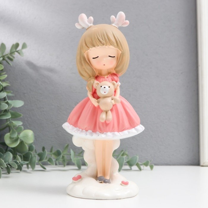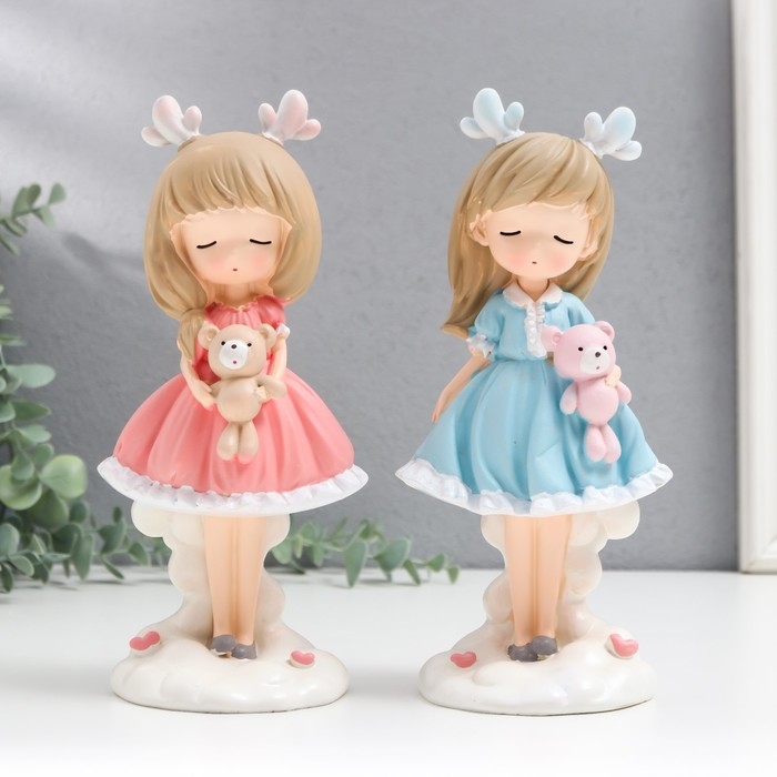 Сувенир полистоун "Девочка с оленьими рожками и мишкой в руках" МИКС 8х9,5х20,5 см