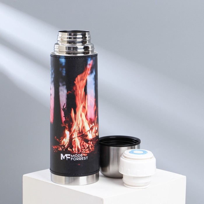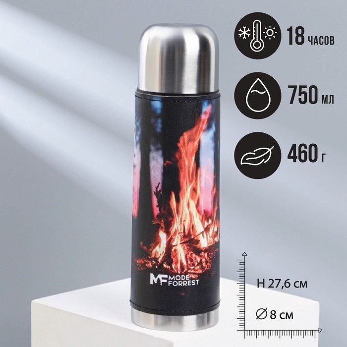 Термос «Огонь» в кожзаме, MODE FORREST, 750 мл, время сохранения тепла 16-18 ч