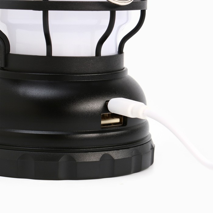 Фонарь кемпинговый аккумуляторный, солнечная батарея, 12 х 13.5 см, от USB, чёрный