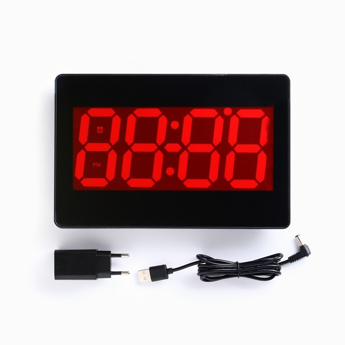 Часы электронные настенные, настольные "Соломон", будильник, 15.5 х 23.5 см, красные цифры