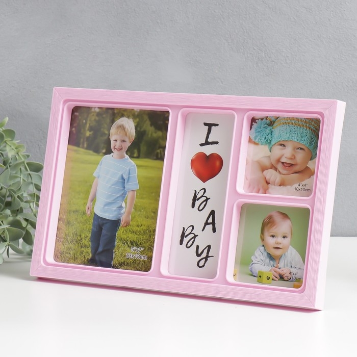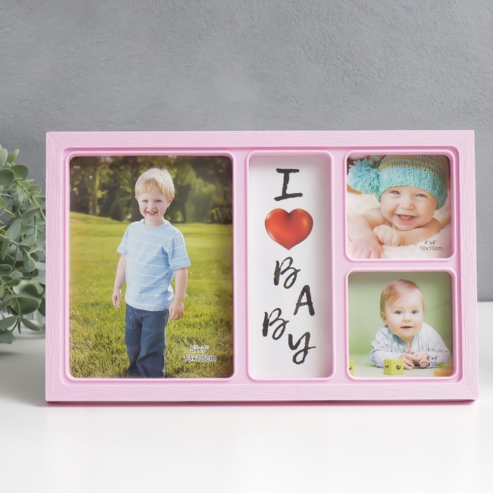 Фоторамка пластик на 3 фото 10х10 см, 13х18 см "Лион" розовая 32х20 см