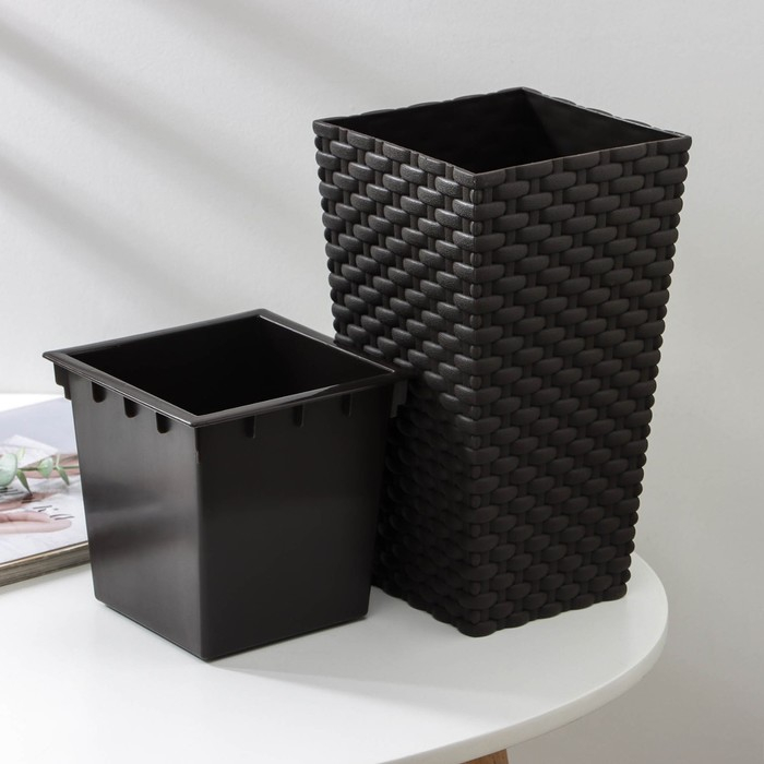 Кашпо для цветов со вставкой «Ротанг», вставка 1,5 л, цвет коричневый