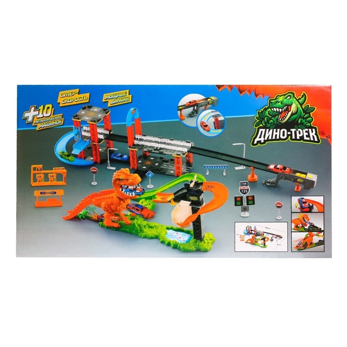 Автотрек «Дино-трек», с запуском, звуковые эффекты, с 10 машинами