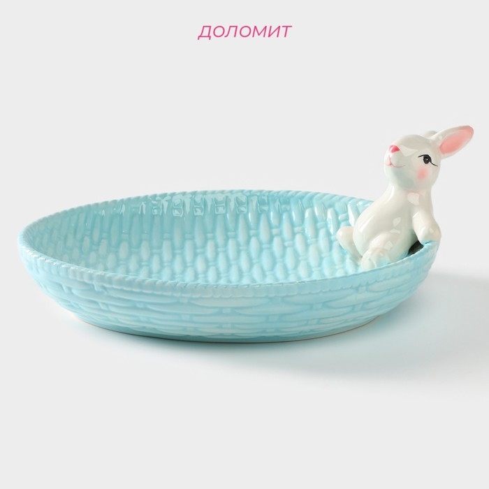 Блюдо сервировочное Доляна «Зайка», 26×19,5×10,5 см, цвет голубой