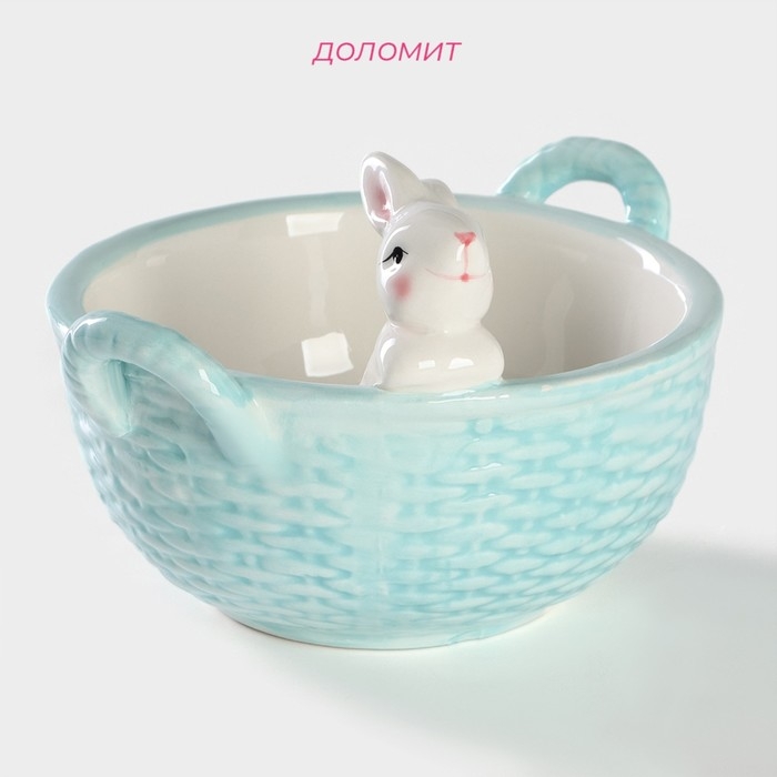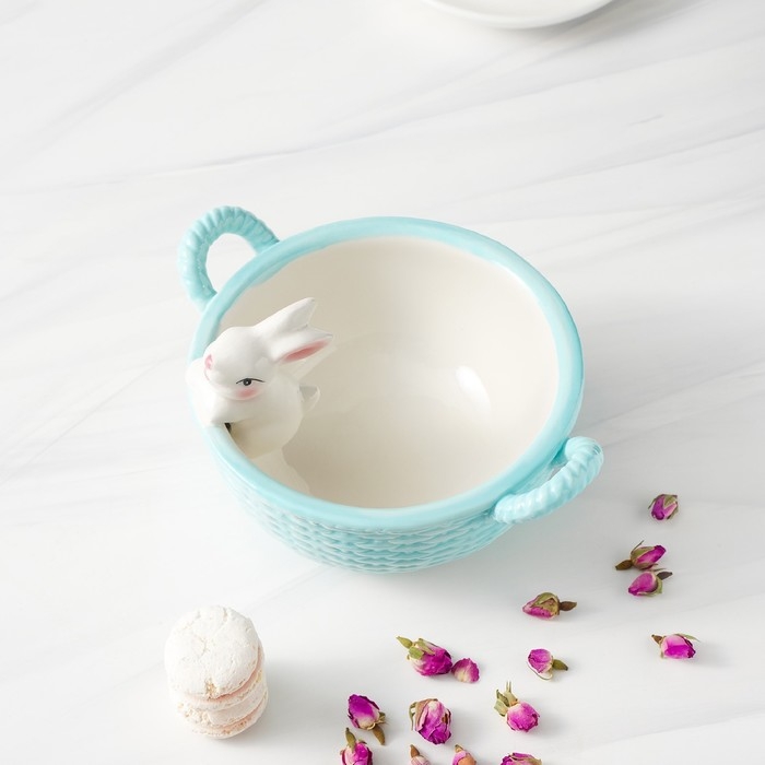 Конфетница Доляна «Зайка», 250 мл, цвет голубой