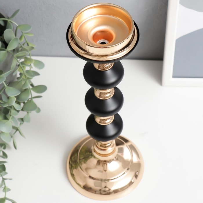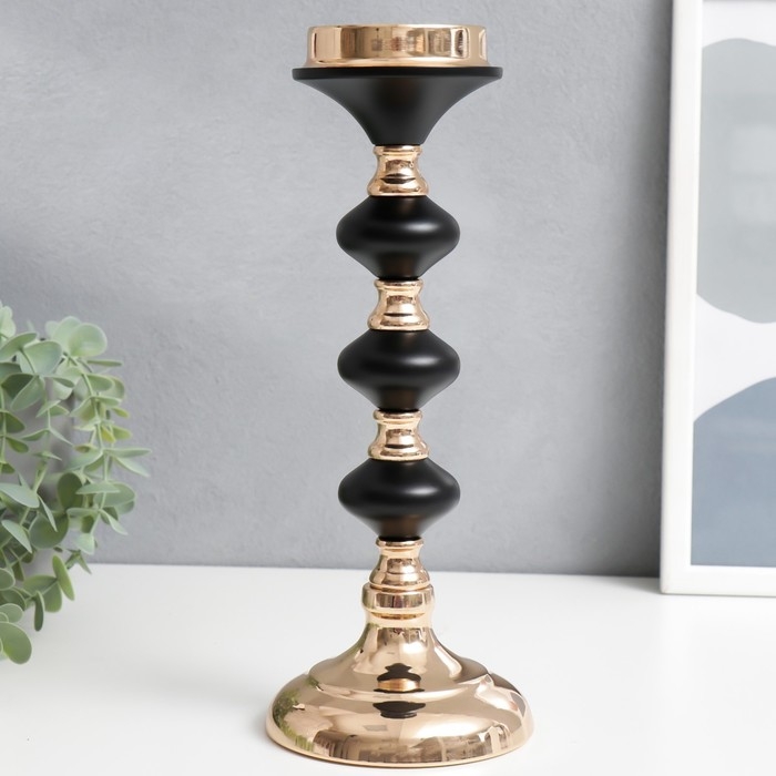 Подсвечник металл на 1 свечу "Чёрная ночь" золото 30х11х11 см
