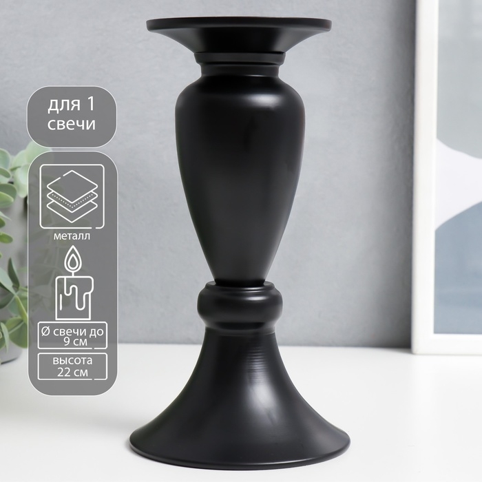Подсвечник металл на 1 свечу "Атмосфера" чёрный матовый 22х11,5х11,5 см