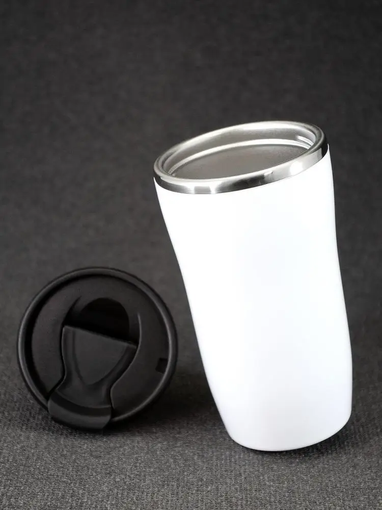 Двухслойная конструкция из пластика снаружи и пищевой нержавеющей стали внутри. Герметичная завинчивающаяся крышка с откидным клапаном для питья. В отверстие в крышке можно вставить шнурок для удобного ношения стакана на руке. Шнурок в комплект не входит.